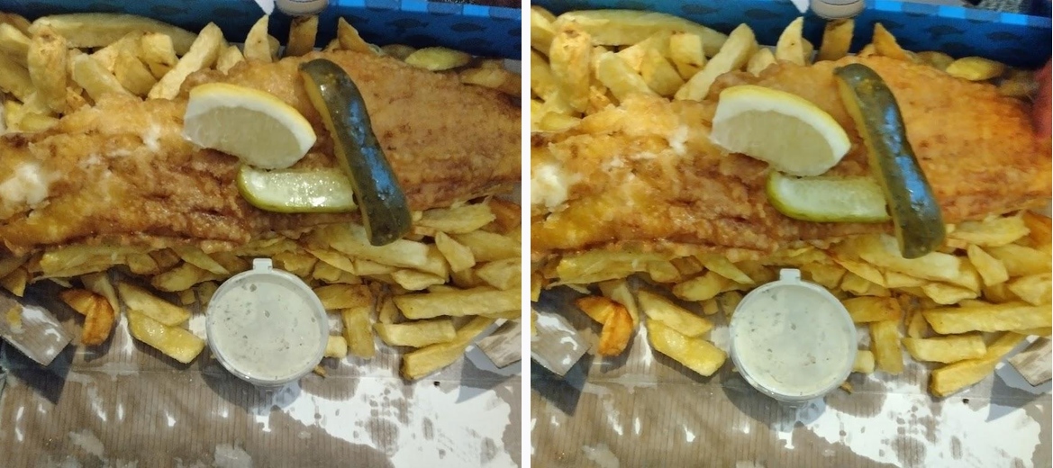 What great value fish and chips! A very large crispy fresh piece of cod with a light batter and a huge portion of chips served with home made tartare sauce two pieces of gherkins and a wedge of lemon all for £8:00 wow it was delicious! Oh and the service is with a smile 🙂